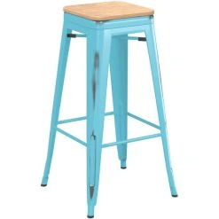 Budget โ BFM Seating Berkeley Natural Beechwood Ladder Back Barstool With 2″ Green Vinyl Seat ๐