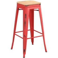 Wholesale ๐ LT&S Alloy Series Lancaster Table & Seating Alloy Series Distressed Red Metal Indoor Industrial Cafe Bar Height Stool With Natural Wood Seat ๐งจ