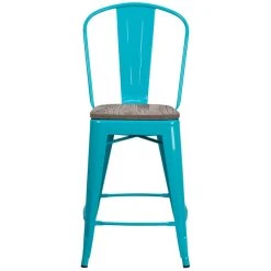 Discount ๐งจ Flash Furniture ET-3534-24-CB-WD-GG 24″ Crystal Teal-Blue Metal Counter Height Stool With Vertical Slat Back And Wood Seat ๐ฅ