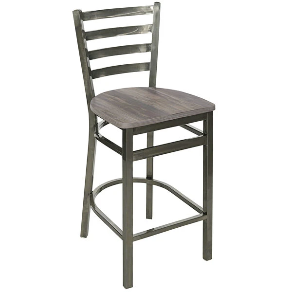 Offer your guests a comfortable and stylish seat with this BFM Seating Lima clear coated steel counter height bar stool with Relic chestnut seat. This barstool boasts a durable welded steel frame that offers a sturdy foundation that is able to withstand daily, heavy-duty use. The frame’s clear coating provides added resistance to nicks and scratches while allowing the beauty of the steel to shine through, for a sleek and contemporary look. This counter height barstool features a Relic chestnut seat with a contoured, textured melamine design to provide your guests with a comfortable seat while offering the beautiful look and feel of real wood to your dining area. This Relic seat supplies superior durability in indoor settings, guarding against scratches, scrapes, and other abrasions, as well as water damage caused by condensation. Its ladder back design offers back support while providing distinct visual appeal. Plus, white nylon glides are capped on the bottom of each leg to help reduce noise and protect your floors for years to come. Overall Dimensions: Seat Width: 17″ Seat Depth: 16 1/2″ Seat Height: 27″ Height: 39 1/2″ Capacity: 250 lb.