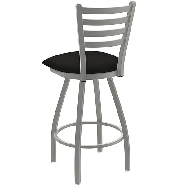 Complete your contemporary dining area with this Holland Barstool XL 410 Jackie 30″ ladderback swivel bar stool with anodized nickel finish and canter espresso seat. This stool features a durable, 16 gauge, 1 1/4″ tube steel frame with mig welded joints, providing outstanding durability. As a part of the XL line, its seat is 2″ wider and 1″ deeper than standard seats, making it perfect for patrons of all sizes and body types. Plus, it boasts an ample weight capacity of 750 lb. and a powder coated anodized nickel finish to resist scratches and chips. This bar stool is made with a supportive back and a breathable, 2 1/2″ thick foam cushion with vinyl cover. This cover is PVC-free with a sanitary anti-microbial/anti-bacterial coating. It is designed to look like leather and features an impressive 1,000,000 double rub durability, ensuring a long product life. This attractive, espresso colored seat with smooth canter design will add a modern touch to your bar and high top seating areas. Add this sturdy, stylish stool to your establishment to ensure your guests comfortably enjoy their dining experience! Overall Dimensions: Width: 22″ Depth: 21″ Height: 44″ Capacity: 750 lb. Seat Dimensions: Height: 30″