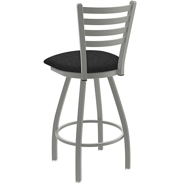 Complete your contemporary dining area with this Holland Bar Stool XL 410 Jackie 30″ ladderback swivel bar stool with anodized nickel finish and graph coal seat. This stool features a durable, 16 gauge, 1 1/4″ tube steel frame with mig welded joints, providing outstanding durability. As a part of the XL line, its seat is 2″ wider and 1″ deeper than standard seats, making it perfect for patrons of all sizes and body types. Plus, it boasts an ample weight capacity of 750 lb. and a powder coated anodized nickel finish to resist scratches and chips. This bar stool is made with a supportive foot rest and back, and a breathable, 2 1/2″ thick foam cushion with fabric cover. The cover features an impressive 170,000 double rub durability, ensuring a long product life. The swivel design of this bar stool allows patrons to turn in their seats so they can comfortably socialize and fully enjoy your venue. This attractive, coal colored seat with lined graph design will add a modern touch to your bar and high top table seating areas. Add this sturdy, stylish stool to your establishment to ensure your guests comfortably enjoy their dining experience! Overall Dimensions: Width: 22″ Depth: 21″ Height: 44″ Capacity: 750 lb. Seat Dimensions: Height: 30″