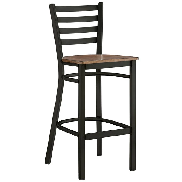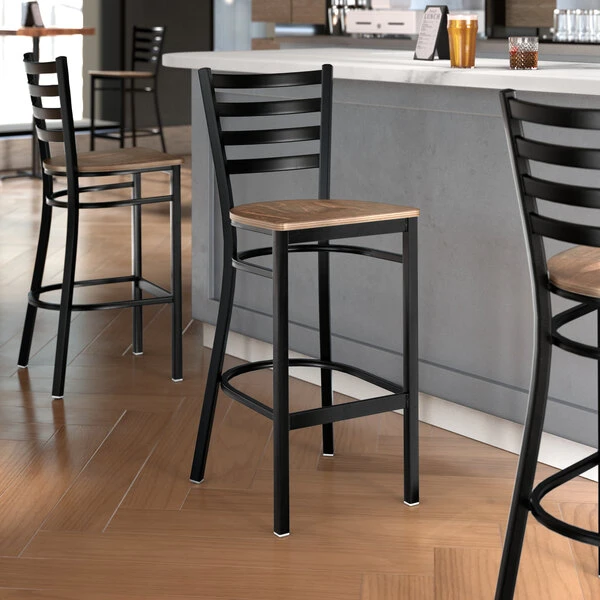 Best Sale 💯 Lancaster Table & Seating Black Ladder Back Bar Height Chair With Vintage Wood Seat 🤩