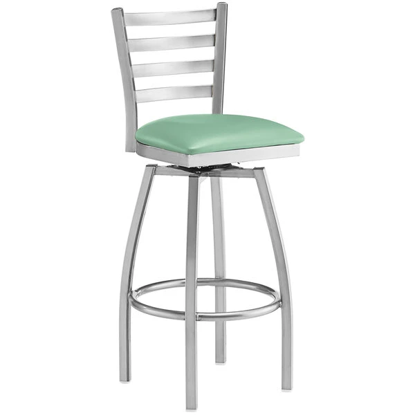Budget 🛒 Lancaster Table & Seating Clear 🧥 Coat Ladder Back Swivel Bar Height Chair With Seafoam Padded Seat 🤩