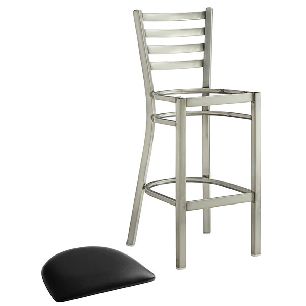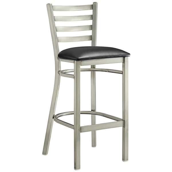 Seat your guests in comfort and style with this Lancaster Table & Seating clear frame ladder back bar height chair with black padded seat! This chair’s clear finish gives you an elegant, upscale look that matches almost any decor, while the sturdy frame provides long-lasting durability. Plus, its eye-catching ladder back design is also contoured for a customer’s back, which provides unmatched comfort while maintaining a distinct look for your bar. At an ideal height for both bar and raised table seating, this chair is a versatile option for any restaurant, bar, deli, or coffee shop. This chair’s padded vinyl seat ensures comfort for your patrons while they enjoy one of your signature drinks or meals. Plus, it’s made of fire-retardant CAL 117 foam. In addition, the heel bar features a protective gold plaque to guard against wear and tear. For additional user convenience, this chair weighs just 18 lb. for easy mobility from one destination to the next. Plus it features a 330 lb. weight capacity. The reliable design ensures you’ll be using this bar height chair in your pub or restaurant for years to come! Overall Dimensions: Width: 17″ Depth: 17″ Height: 44″ Seat Height: 30 1/2″ Capacity: 330 lb.