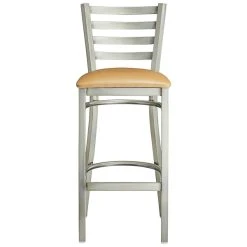 Seat your guests in comfort and style with this Lancaster Table & Seating clear frame ladder back bar height chair with light brown padded seat! This chair’s clear finish gives you an elegant, upscale look that matches almost any decor, while the sturdy frame provides long-lasting durability. Plus, its eye-catching ladder back design is also contoured for a customer’s back, which provides unmatched comfort while maintaining a distinct look for your bar. At an ideal height for both bar and raised table seating, this chair is a versatile option for any restaurant, bar, deli, or coffee shop. This chair’s padded vinyl seat ensures comfort for your patrons while they enjoy one of your signature drinks or meals. Plus, it’s made of fire-retardant CAL 117 foam. In addition, the heel bar features a protective gold plaque to guard against wear and tear. For additional user convenience, this chair weighs just 18 lb. for easy mobility from one destination to the next. Plus it features a 330 lb. weight capacity. The reliable design ensures you’ll be using this bar height chair in your pub or restaurant for years to come! Overall Dimensions: Width: 17″ Depth: 17″ Height: 44″ Seat Height: 30 1/2″ Capacity: 330 lb.