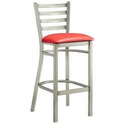 Seat your guests in comfort and style with this Lancaster Table & Seating clear frame ladder back bar height chair with red padded seat! This chair’s clear finish gives you an elegant, upscale look that matches almost any decor, while the sturdy frame provides long-lasting durability. Plus, its eye-catching ladder back design is also contoured for a customer’s back, which provides unmatched comfort while maintaining a distinct look for your bar. At an ideal height for both bar and raised table seating, this chair is a versatile option for any restaurant, bar, deli, or coffee shop. This chair’s padded vinyl seat ensures comfort for your patrons while they enjoy one of your signature drinks or meals. Plus, it’s made of fire-retardant CAL 117 foam. In addition, the heel bar features a protective gold plaque to guard against wear and tear. For additional user convenience, this chair weighs just 18 lb. for easy mobility from one destination to the next. Plus it features a 330 lb. weight capacity. The reliable design ensures you’ll be using this bar height chair in your pub or restaurant for years to come! Overall Dimensions: Width: 17″ Depth: 17″ Height: 44″ Seat Height: 30 1/2″ Capacity: 330 lb.