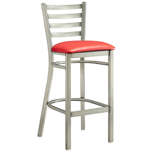 Deals ๐ Lancaster Table & Seating Clear Frame Ladder Back Bar Height Chair With Red Padded Seat โค๏ธ
