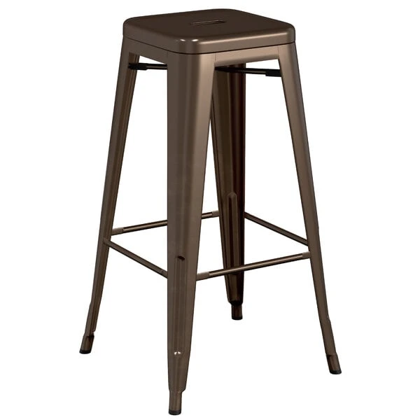 This stool is made of durable steel and double coated to withstand years of use. The copper color adds an elegant touch to any setting and is sure to be a design choice that guests love. Comfortable and stylish, this strong yet lightweight stool is an excellent choice for your indoor or outdoor dining area.