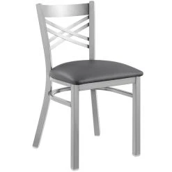 New 🧨 Lancaster Table & Seating Clear 🧥 Coat Cross Back Chair With Dark Gray Padded Seat 🎉