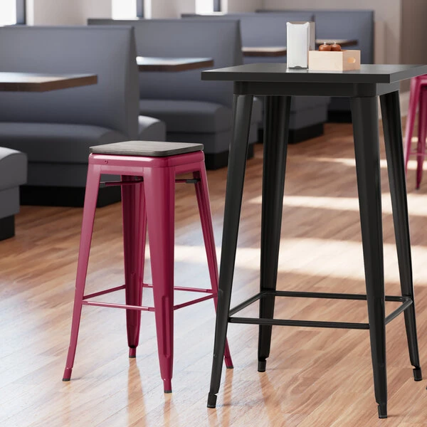 Brand new ❤️ LT&S Alloy Series Lancaster Table & Seating Alloy Series Sangria Metal Indoor Industrial Cafe Bar Height Stool With Black Wood Seat 💯