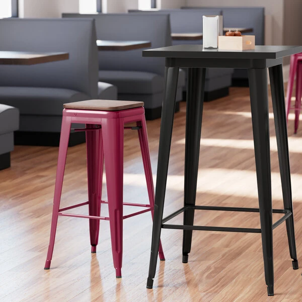 This stool is made of durable steel and double coated to protect against corrosion and general wear and tear. The vibrant sangria color adds a bright, modern touch to any setting, and is sure to be a design choice that guests love. Built to last, and with comfort and style in mind, this strong yet lightweight stool is an excellent choice for your indoor dining area.