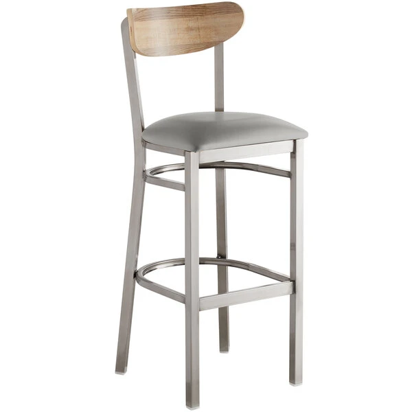 Best deal 🔔 LT&S Boomerang Series Lancaster Table & Seating Boomerang Bar Height Clear 🧥 Coat Chair With Light Gray Vinyl Seat And Driftwood Back 👍
