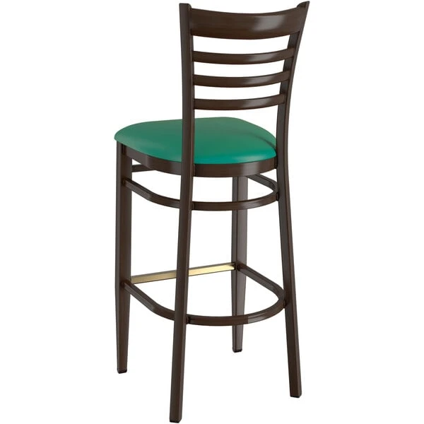 Cheapest ๐ LT&S Spartan Series Lancaster Table & Seating Spartan Series Bar Height Metal Ladder Back Chair With Walnut Wood Grain Finish And Green Vinyl Seat ๐คฉ